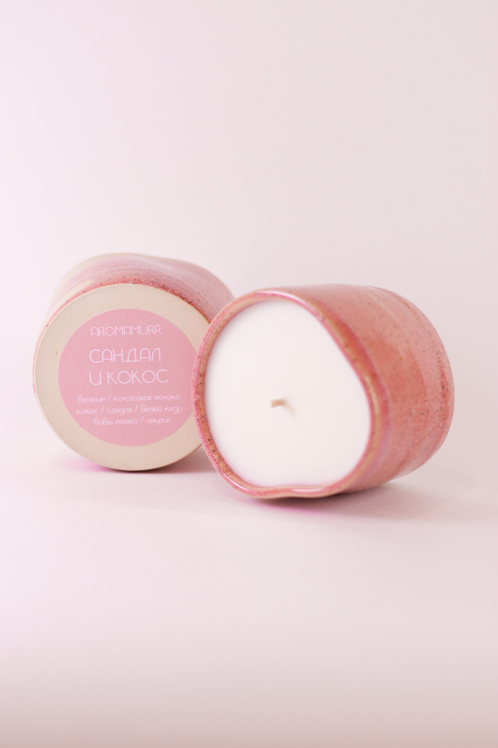Свеча ручной работы в вазочке из глины, хлопковый фитиль, натуральный соевый воск и аромамасла премиального качества