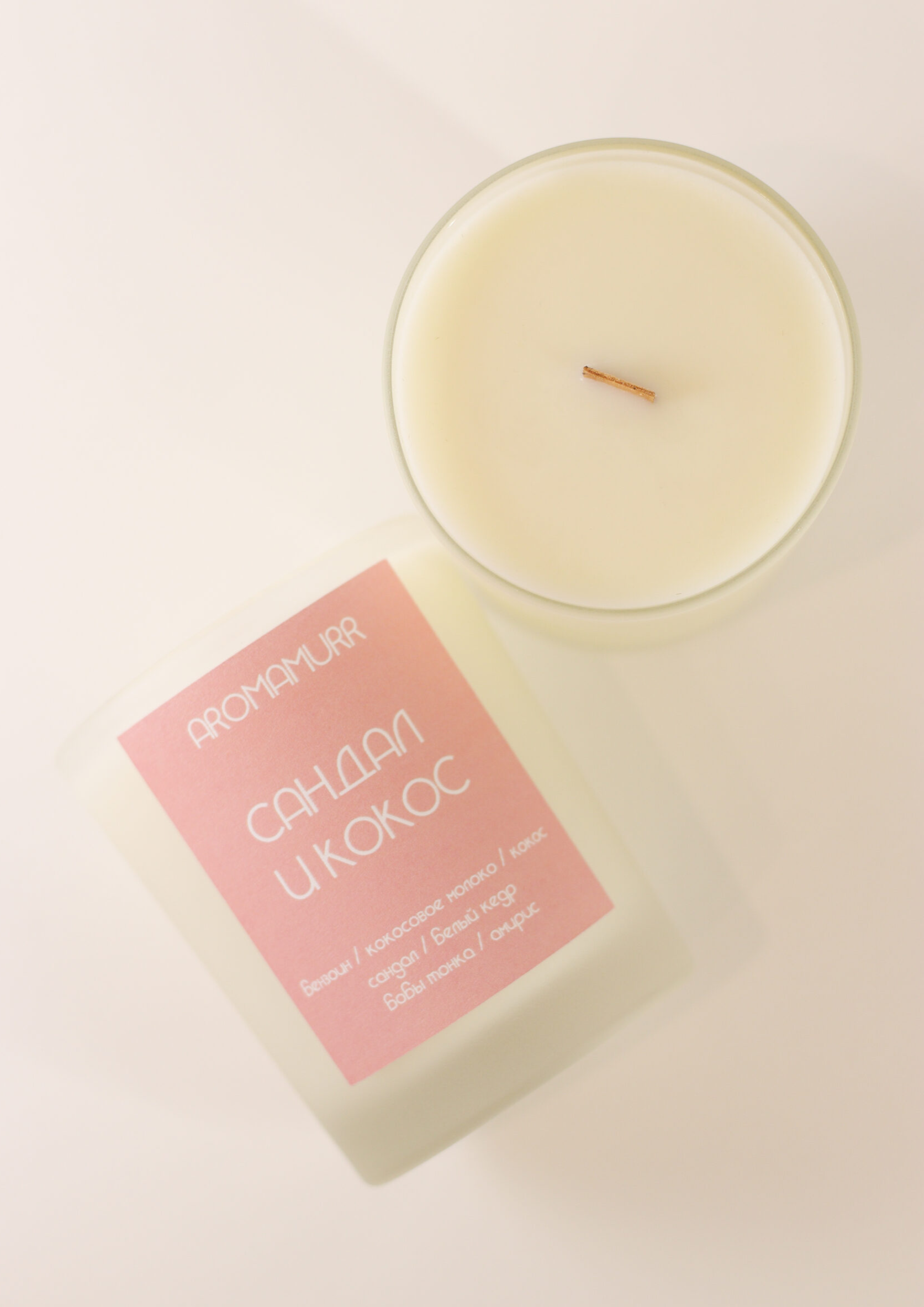 Аромат "сандал и кокос", в составе которого идут такие натуральные компоненты как: бензоин / кокосовое молоко / кокос сандал / белый кедр бобы тонка / амирис